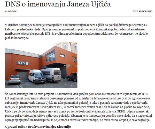 Komentar upravnega odbora Društva novinarjev Slovenije na spletni strani www.novinar.com