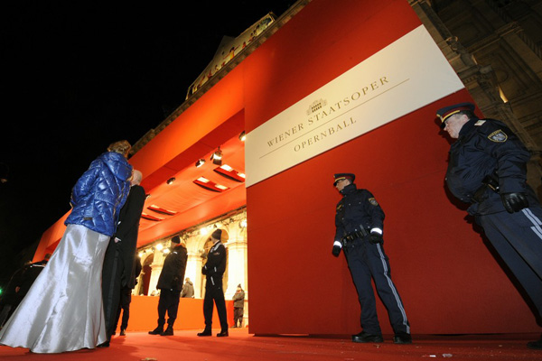 Vhod v dunajsko državno opero (Wiener Staatsoper) je med dunajskim plesom obvezno močno zastražen, elitni ples pa zunaj običajno spremljajo tudi demonstracije.