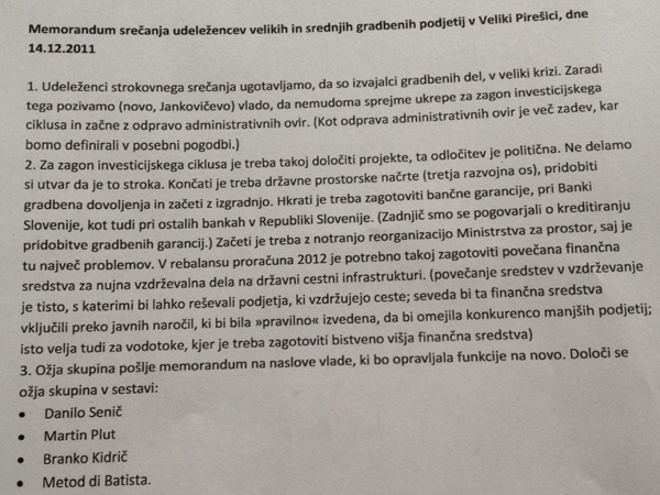 Pireški memorandum, prebran v Veliki Pirešici pri Celju, 14. decembra 2011.