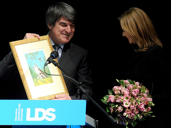 Tone Anderlič je Katarini Kresal ob slovesu podaril šopek rož in sliko slikarke Jelke Reichman. Kresalova se bo poslej kot odvetnica posvečala reševanju sporov.