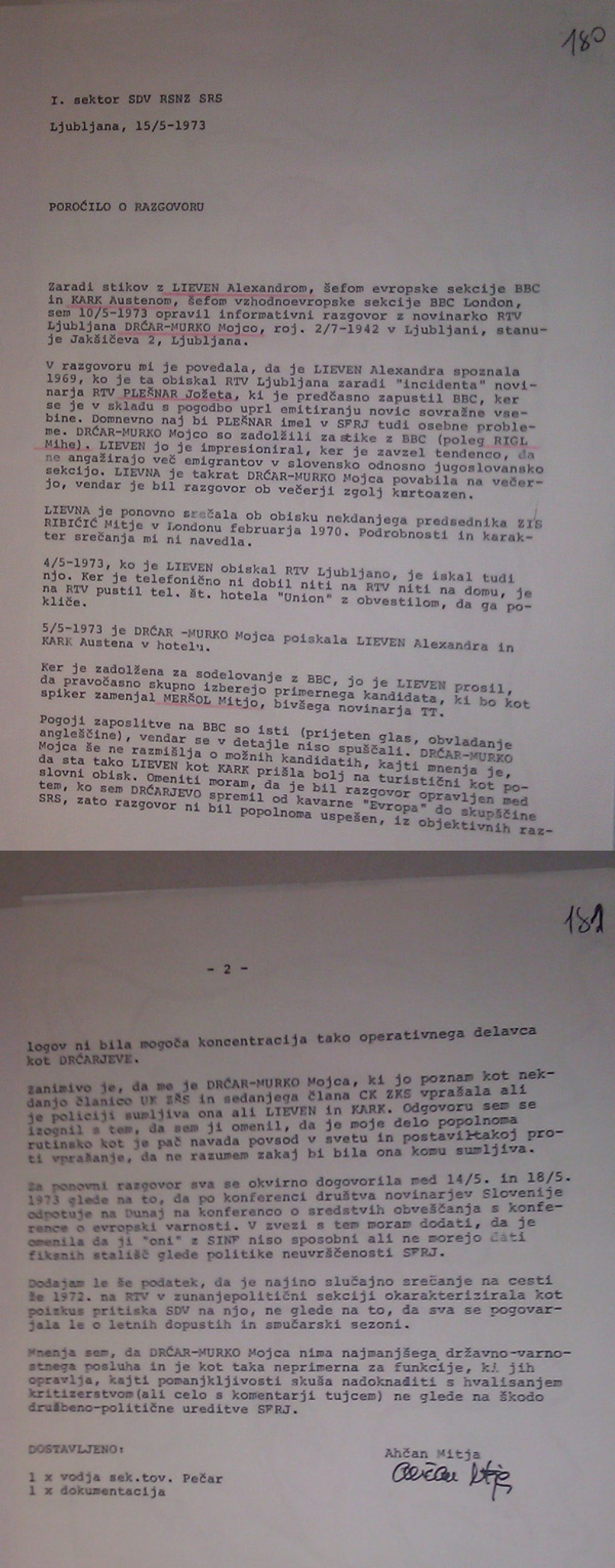To pa je dokument, ki dokazuje, kako je novinarka TV Slovenije Mojca Drčar Murko zavrnila sodelovanje z nekdanjo zloglasno Službo državne varnosti (za povečavo klikni na sliko).
