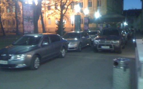 Neverjetno, ampak žal resnično. Sedem avtomobilov predsednika republike Danila Türka, parkiranih pred stavbo SNG Maribor (vir: Reporter).