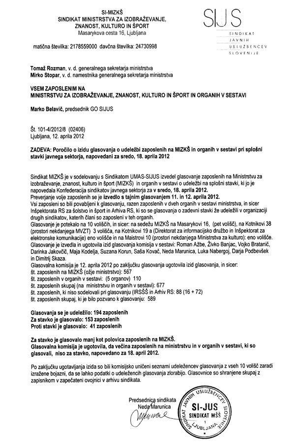 Faksimile zapisnika o glasovanju (za povečavo klikni na sliko).