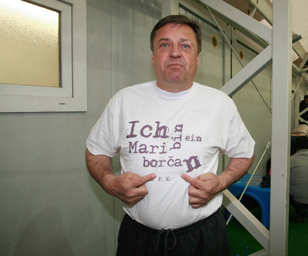 Ljubljanski župan Zoran Janković osvaja Maribor, z majico in napisom Ich bin ein Mariborchan.