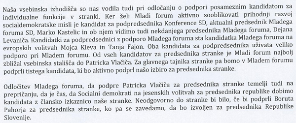 Faksimile. Del osnutka najnovejše izjave Mladega foruma, ki naj bi še danes prišel v medije.