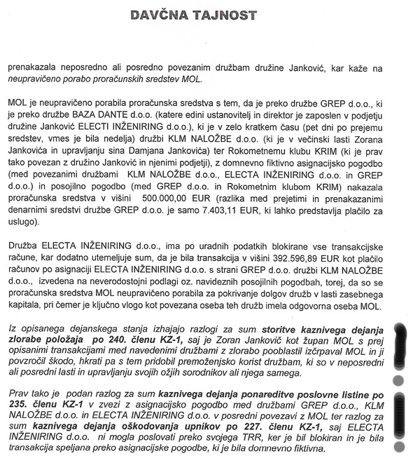 Faksimile. Davčna uprava Zorana Jankovića sumi storitve treh kaznivih dejanj. Del pridobljene dokumentacije Dursa, ki so jo dacarji 19. aprila letos posredovali na tožilstvo, policijo in NPU, objavljamo danes, večji del pa jutri zjutraj ...