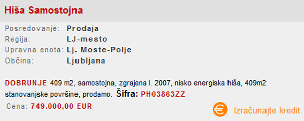 Družinska hiša Darijana Koširja se prodaja prek agencije Nepremičnine.net, nekdanji državni uradnik in pred leti odgovorni urednik Dela pa bi zanjo rad dobil 749 tisoč evrov.
