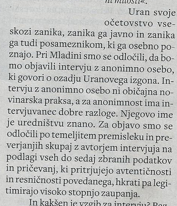 Del teksta Jureta Trampuža, kjer pojasnjuje, zakaj so se v Mladini odločili objaviti intervju z (domnevnim) anonimnim virom spletnega portala Požareport.