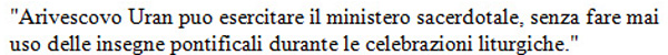Konec maševanja s tako imenovanimi škofovskimi insignijami. To so navodila apostolskega nuncija, ki jih je Alojz Uran prejel 29. junija letos.