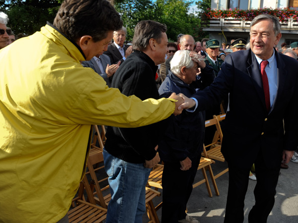 Rokovanje predsedniških kandidatov. Fotografija pove vse. Borut Pahor in Danilo Türk na letošnji partizanski proslavi v Rodiku. Med njima Zoran Janković in Milan Kučan.