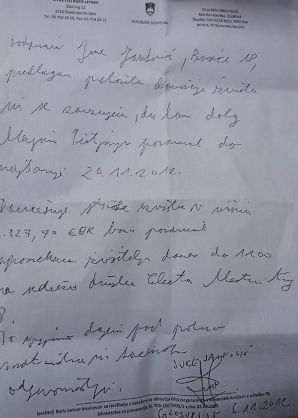 Jure Janković je vse do zadnjega lagal, da bo vrnil svoj dolg. Zoran Janković pa se je 6. novembra, takrat ko je Jure Janković podpisal to izjavo, pridušal, da njegov sin Jure nikomur ničesar ne dolguje.